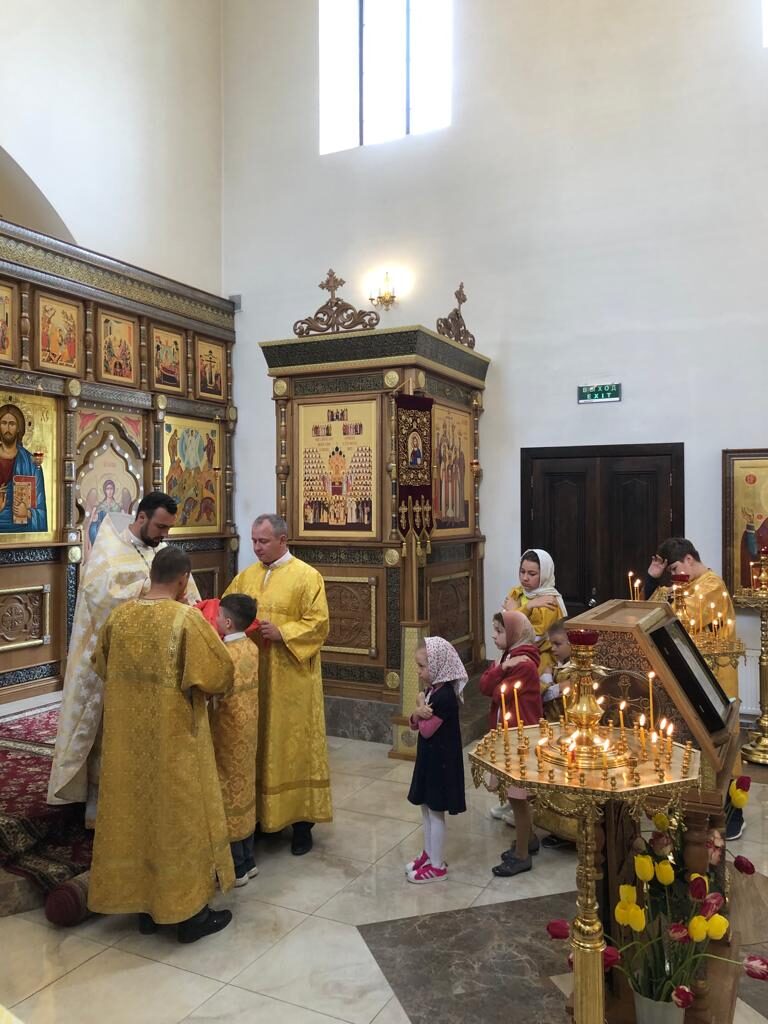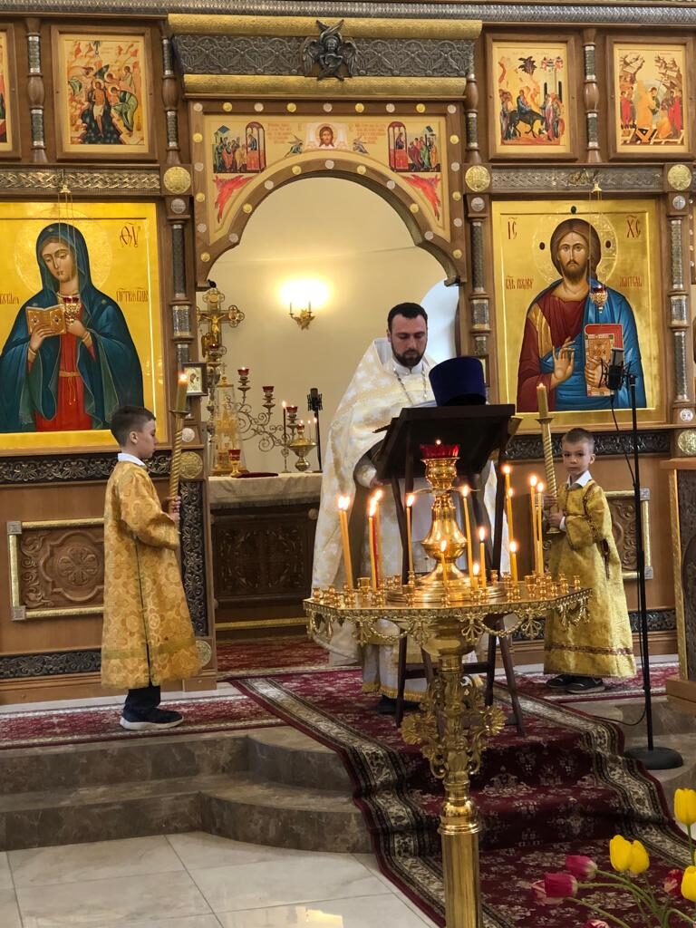 По окончании службы батюшка Ярослав поздравил всех присутствующих с праздником, причастившихся – со святым причастием и произнес добрую и поучительную проповедь. Поздравил прихожанку нашего храма Анну Растокину с днем рождения, пропели все вместе «многая лета…»
