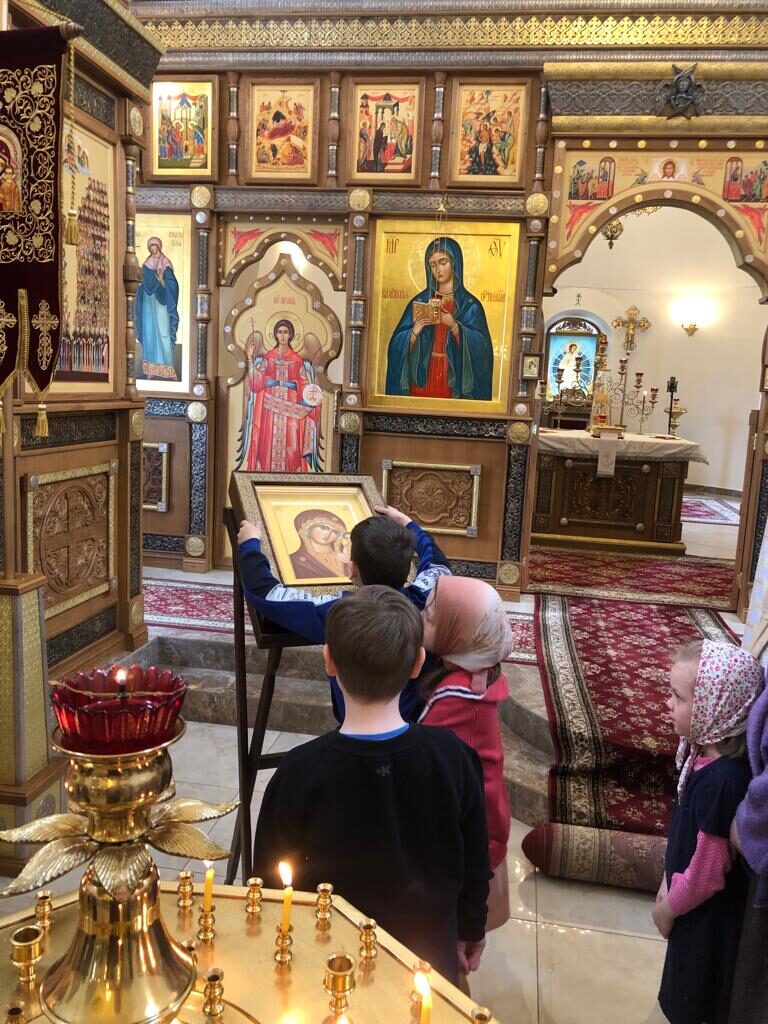 В этот праздничный день песнопения исполнил наш церковный хор, и юные прихожане, которые чистыми и звонкими голосами наполнили храм молитвами. Литургия проходила в особой атмосфере. Большая часть прихожан исповедовались и причастились. Настроение праздника добавило освящение новой написанной аналойной иконы «Казанская Божия Матерь» для нашего храма.