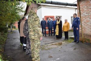 3 октября ещё одна группа наших ребят сегодня отправилась на защиту Родины! Сначала — учебная часть в Подмосковье, где они пройдут необходимую подготовку, затем будут направлены на выполнение задач. Перед ребятами выступили глава администрации Дзержинского района Вирков Е.О., глава района Степонян А.А., военный комиссар Поляков А.Ю., пообещав всестороннюю поддержку им и их семьям. Со словами духовного напутствия к нашим ребятам обратился иерей Ярослав Клоков, настоятель храма Преображения Господня в усадьбе Гончаровых. Батюшка благословил на ратное дело, передал им небольшие иконки и окропил святой водой.