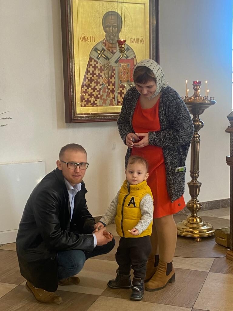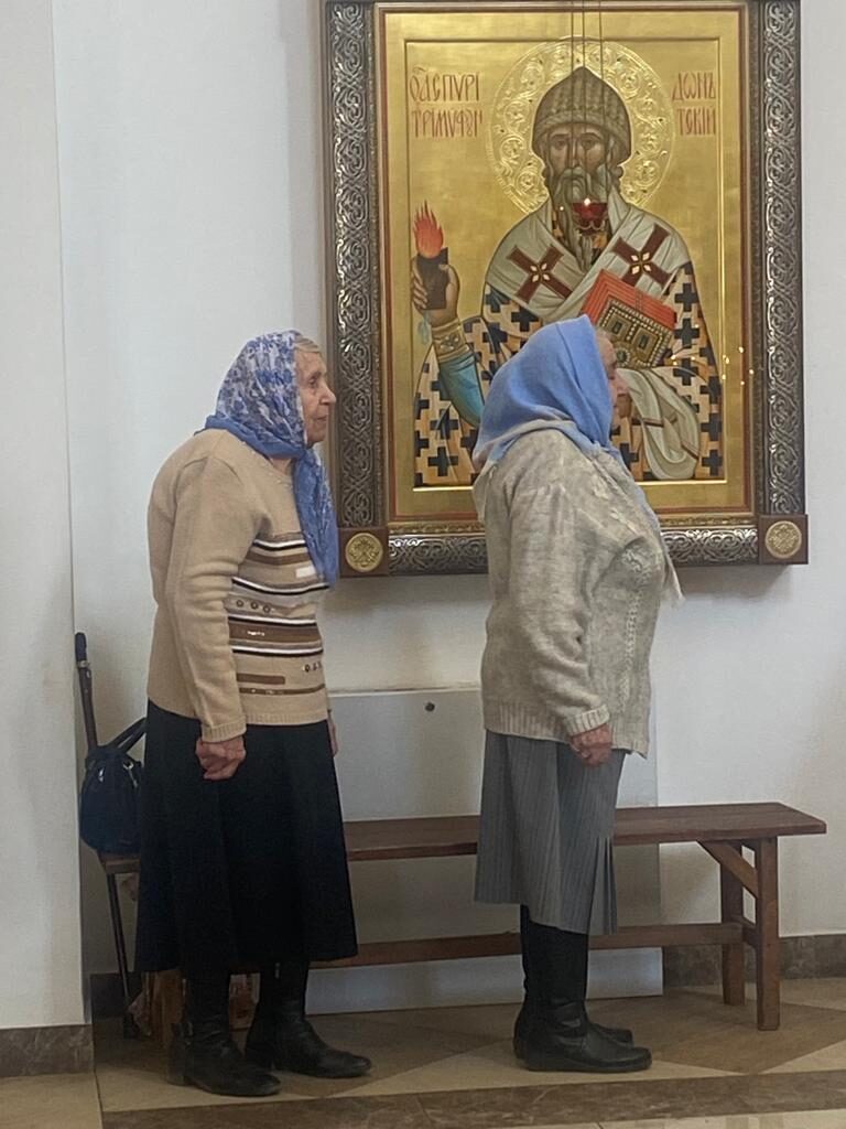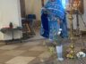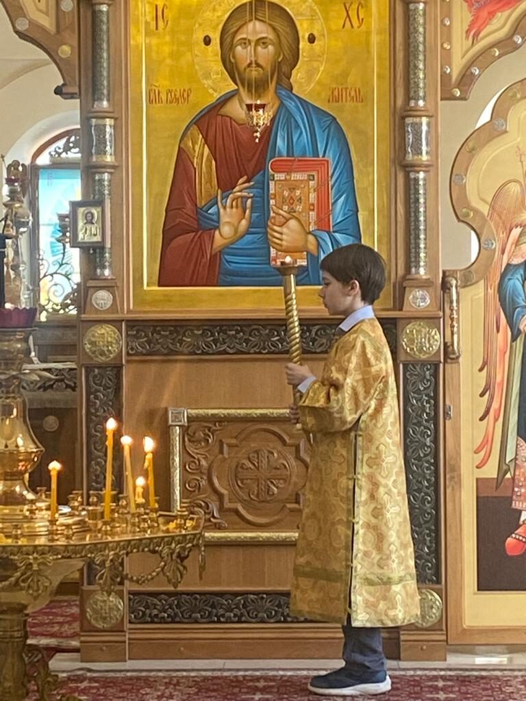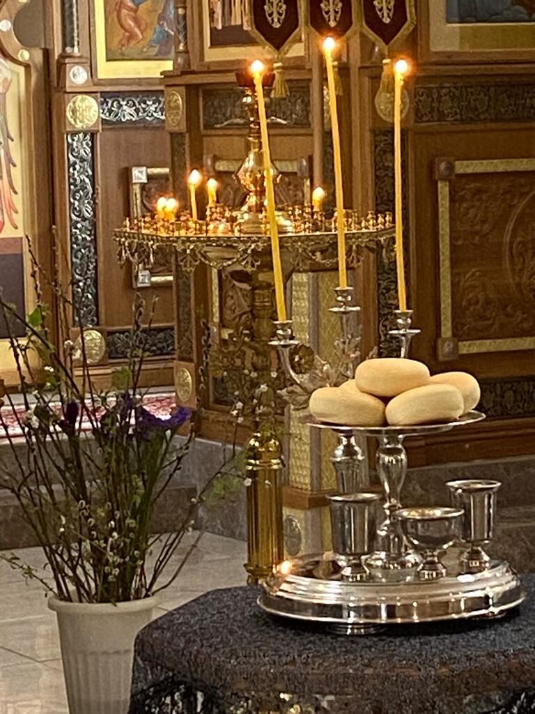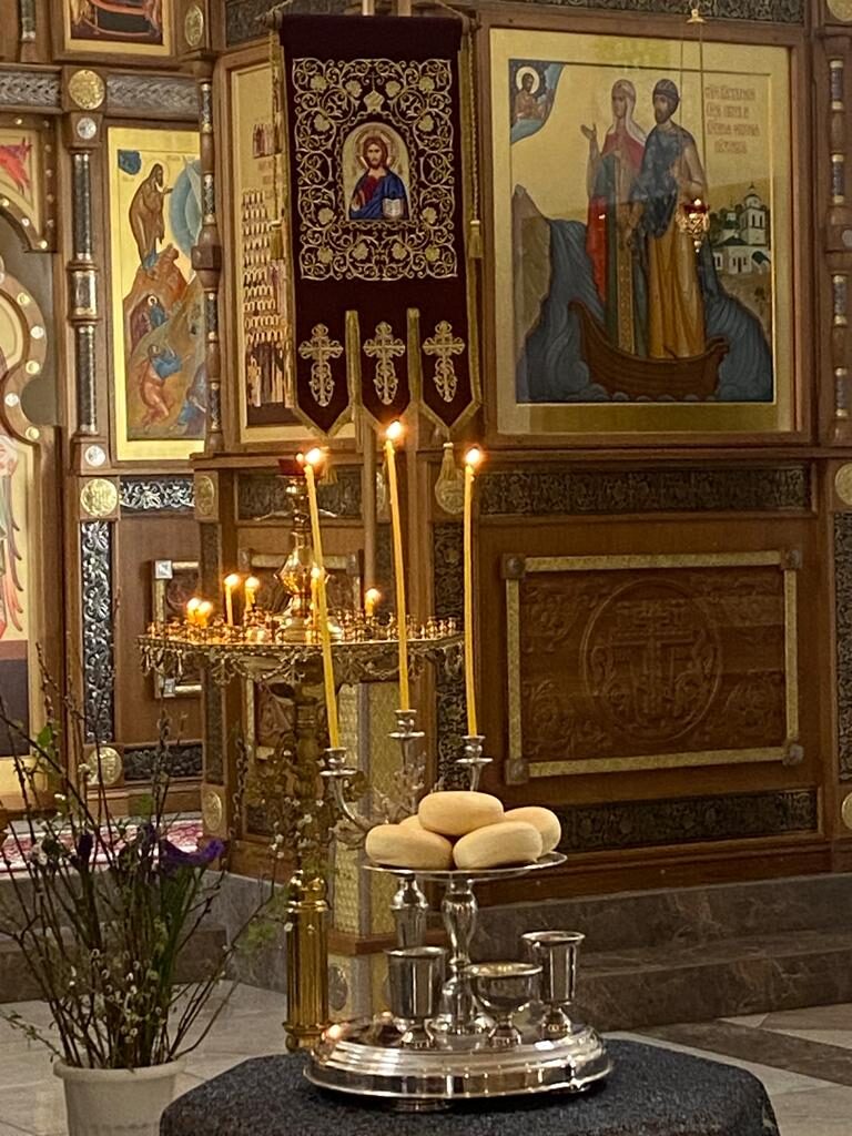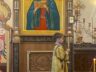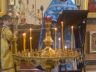 Батюшка Ярослав в праздничном облачении голубого цвета — этот оттенок является символом Богородицы. И наши прихожаночки тоже в праздничных голубых и синих платочках. И от этого в храме стало празднично и нарядно. Большая часть прихожан подготовились к исповеди и Святому Причастию.