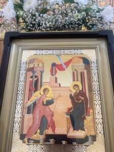 После богослужения батюшка Ярослав тепло и сердечно поздравил всех с Праздником, причастившихся — с принятием Святого Причастия и обратился к молящимся с проповедью, в которой подробно изъяснил историю сегодняшнего праздника: «7 апреля Церковь вспоминает событие Благовещения Пресвятой Богородицы. Во время богослужения рассказывается о сути праздника и явления ангела к Марии. Торжество Благовещения Пресвятой Богородицы является краеугольным камнем в нашем литургическом календаре. От него отсчитывается Рождество Христово, но оно не смещается в зависимости от положения Пасхи, а древняя христианская традиция говорит, что в этот же самый день Господь наш был распят. В нынешнем году этот праздник стоит прямо у преддверия Страстей Христовых, открывая особенные смыслы в нашем понимании домостроительства человеческого спасения. Вот, только что произнесенное благовестие миру через Деву: «Радуйся!». И тут же, не успеем мы опомниться, как будем петь печальную песнь Христову, обращенную к Деве: «Не рыдай Мене, Мати, зрящи во гробе».