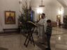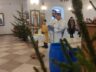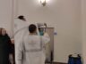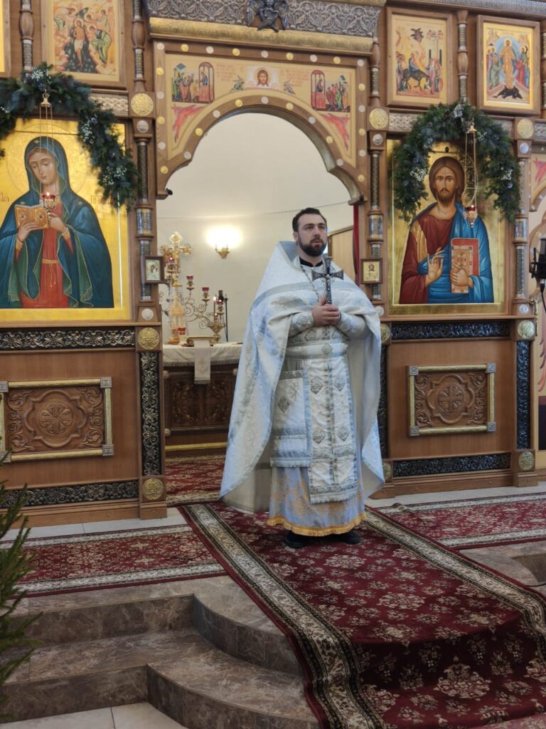 Батюшка сердечно поздравил всех с Крещенским сочельником. Когда прихожане подходили к Кресту в конце службы, отец Ярослав каждого кропил святой водой.