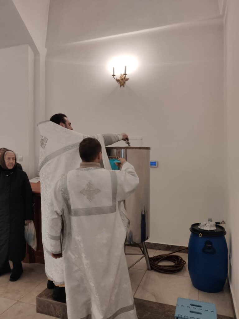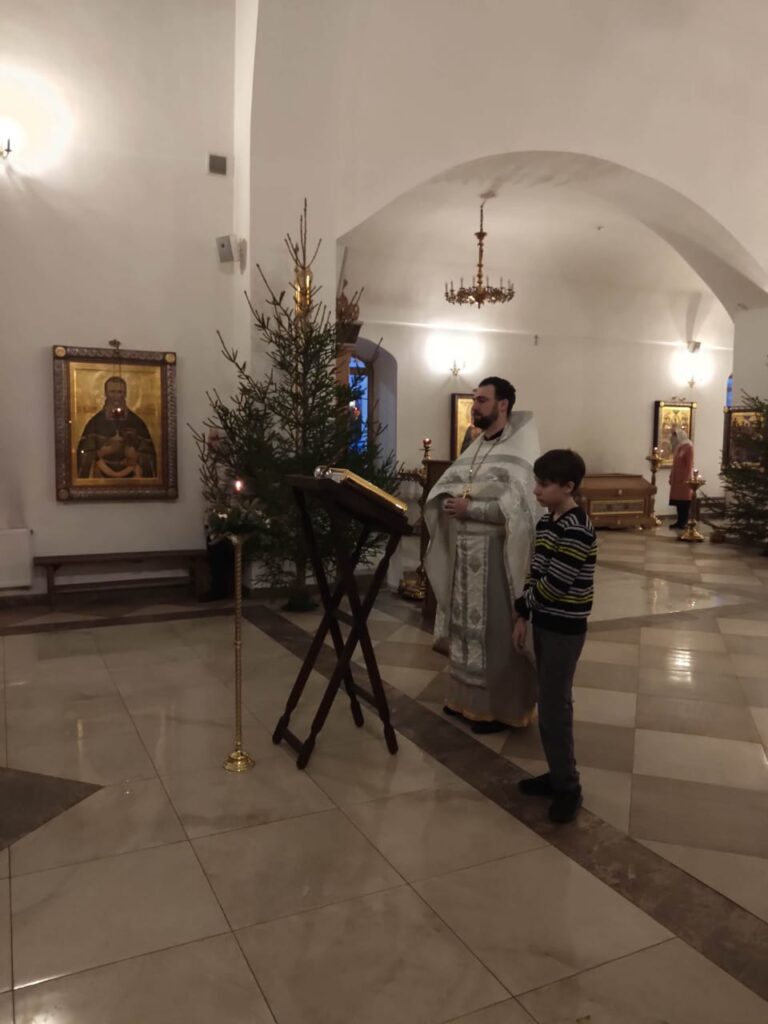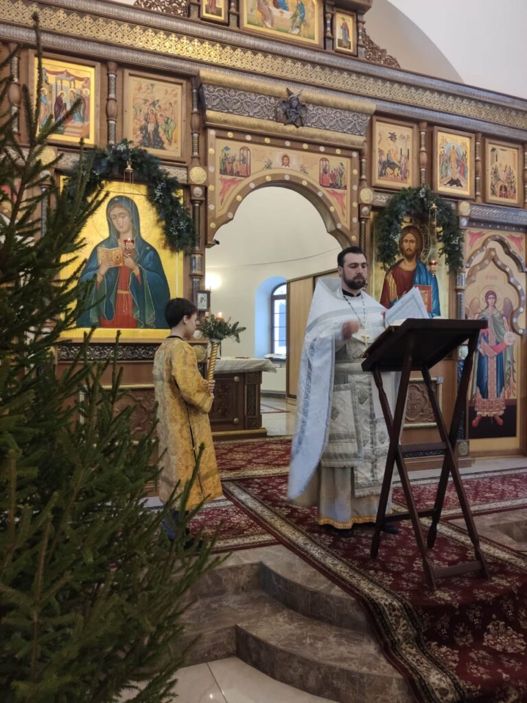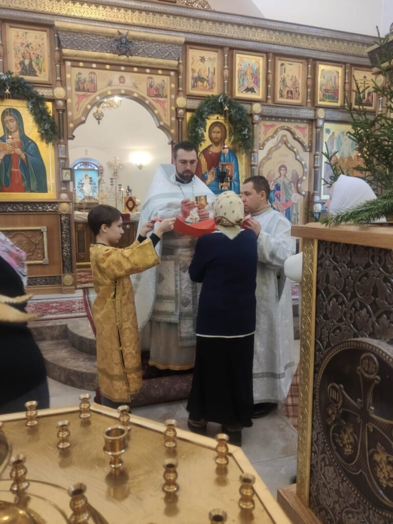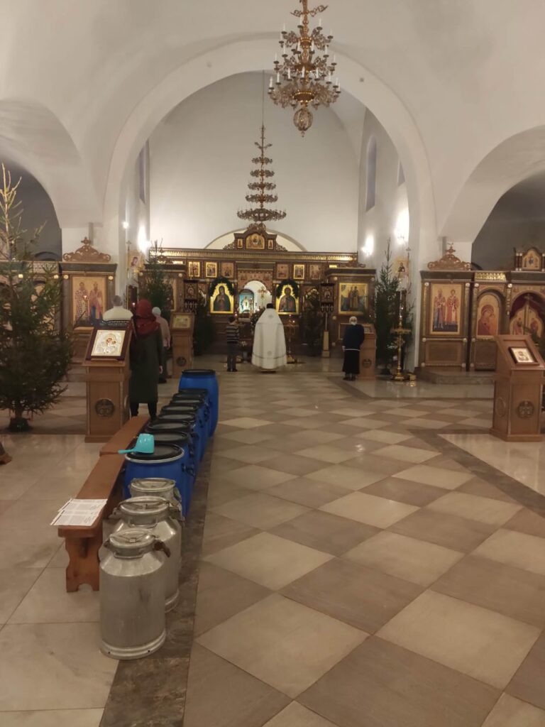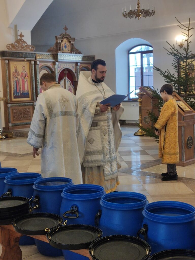 18 января 2024 года в Крещенский сочельник, или Навечерие Богоявления, в нашем храме было совершено утреннее праздничное богослужение. После прочтения царских часов (перед началом литургии, при погашенных светильниках в храме звучат псалмы, краткие молитвы), отец Ярослав совершил Великую вечерню плавно перетекающую в Литургию Василия Великого. Такая служба совершается не часто, всего лишь несколько раз в году и единожды совершается перед самим праздником Крещения Христова. Затем состоялось великое освящение воды и после богослужения все желающие могли набрать себе воды. Крещенская вода, как известно, обладает особыми духовными свойствами. В молитве на освящении воды просим, чтобы всем, пьющим эту воду и окропляющимся ею, Господь послал «освящение, здравие, очищение и благословение».