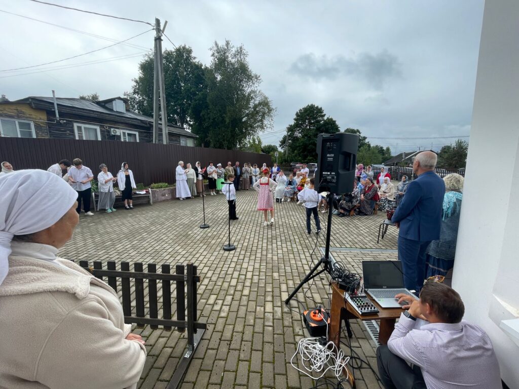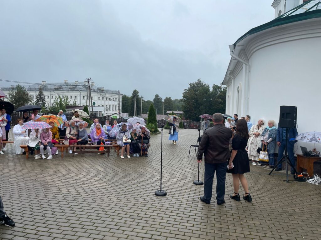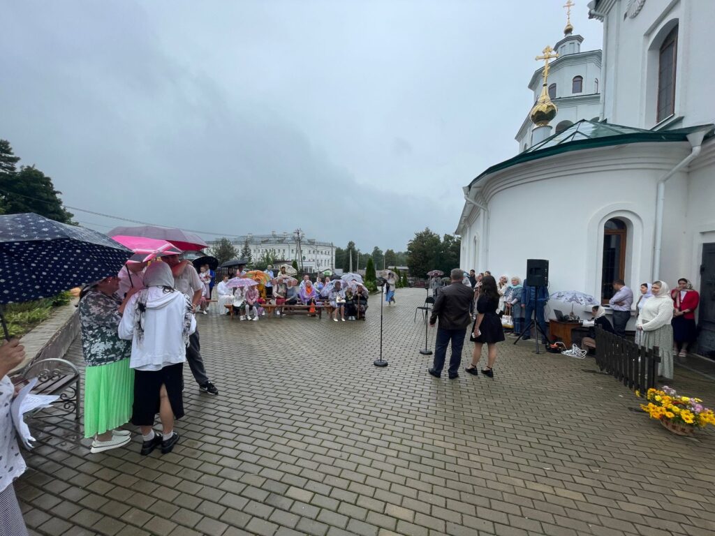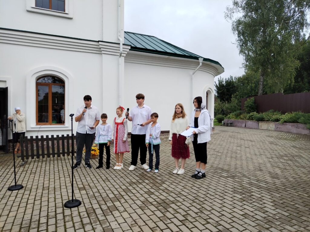 И уже по давно сложившейся традиции началось празднование с совместной фотографии всех присутствующих, которое плавно перетекло в концерт. Не смотря на то, что шёл дождь, это был очень радостный день для всех нас. Воспитанники воскресной школы совместно с преподавателями, хором нашего храма и некоторые из прихожан подготовили небольшую концертную программу с песнями, танцами, весёлыми сценками. После концерта всех ждал тёплый чай с булочками и сладостями, и конечно же, вкусный квас. Но на этом праздник не закончился. Всех присутствующих ожидали весёлые игры и забавы, как Гори гори ясно и Банька, а также провели мастер-классы по валянию яблок и изготовлению брелков. Думаю, что каждый присутствущий на празднике, домой унёс ощущение тепла и единения. Господь нас всех объединяет и под влиянием таких совместных праздников, мы и сами преображаемся.