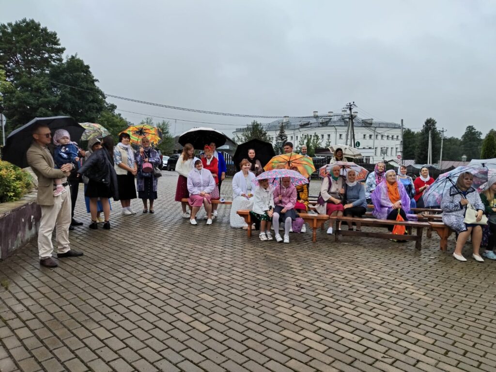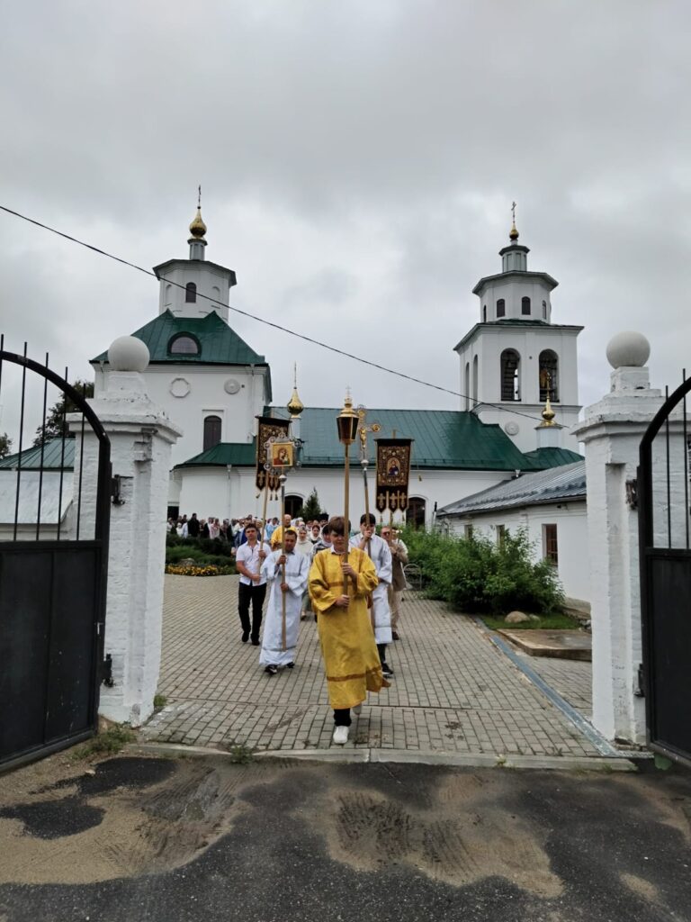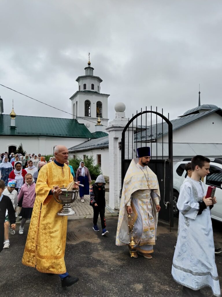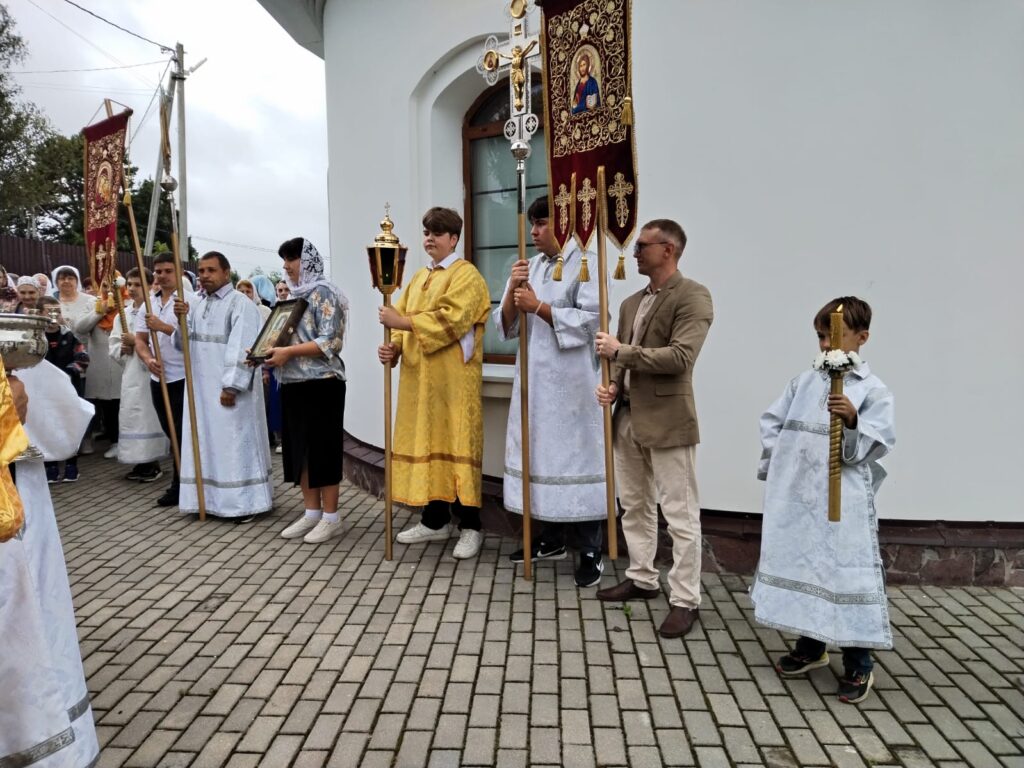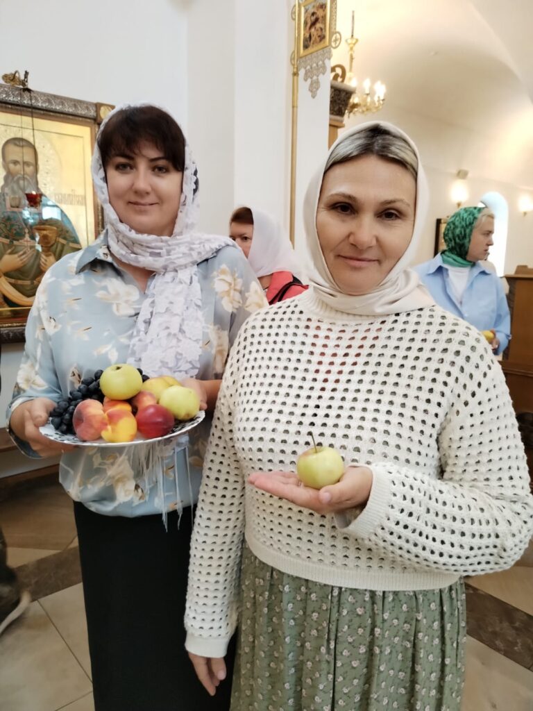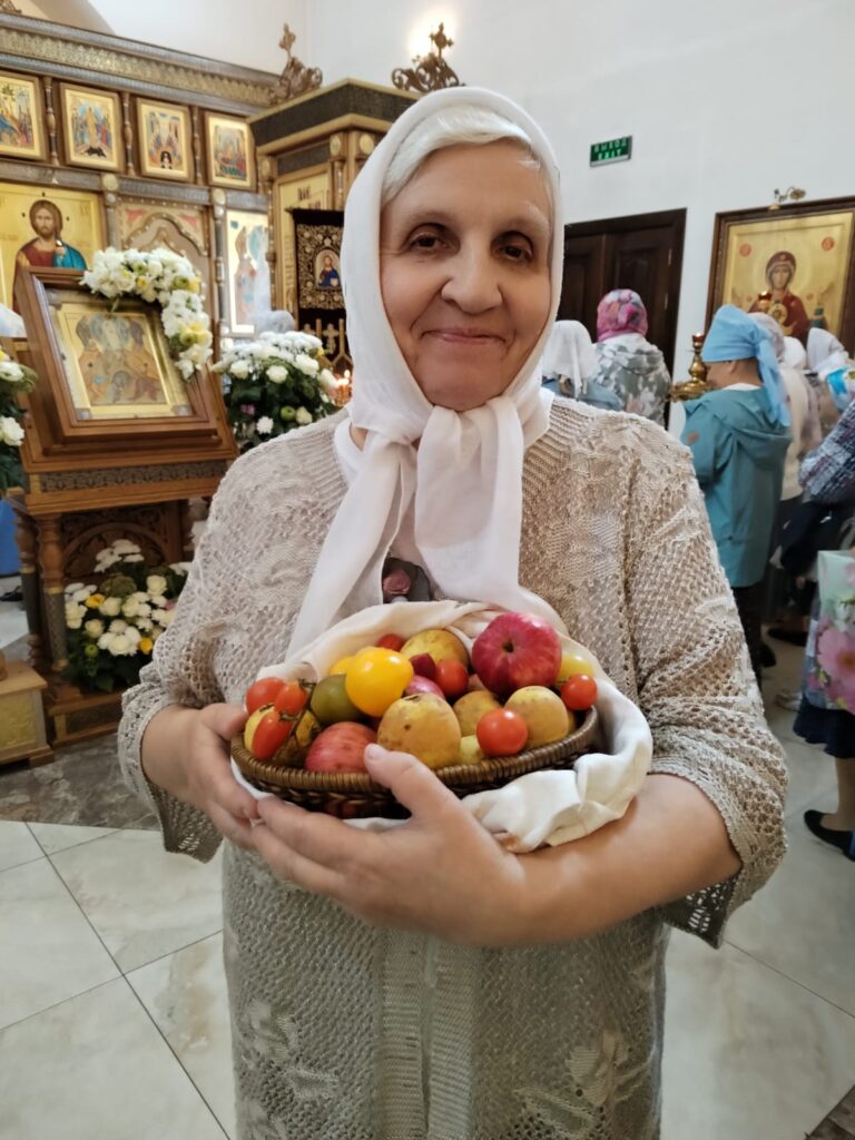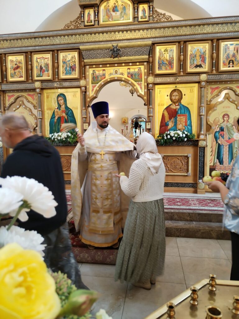 Сразу после Литургии всем приходом во главе с отцом Ярославом был совершен Крестный ход. По окончании службы батюшка кропил святой водой всех прихожан и плоды, в основном это яблоки, которые каждый принёс с собой.