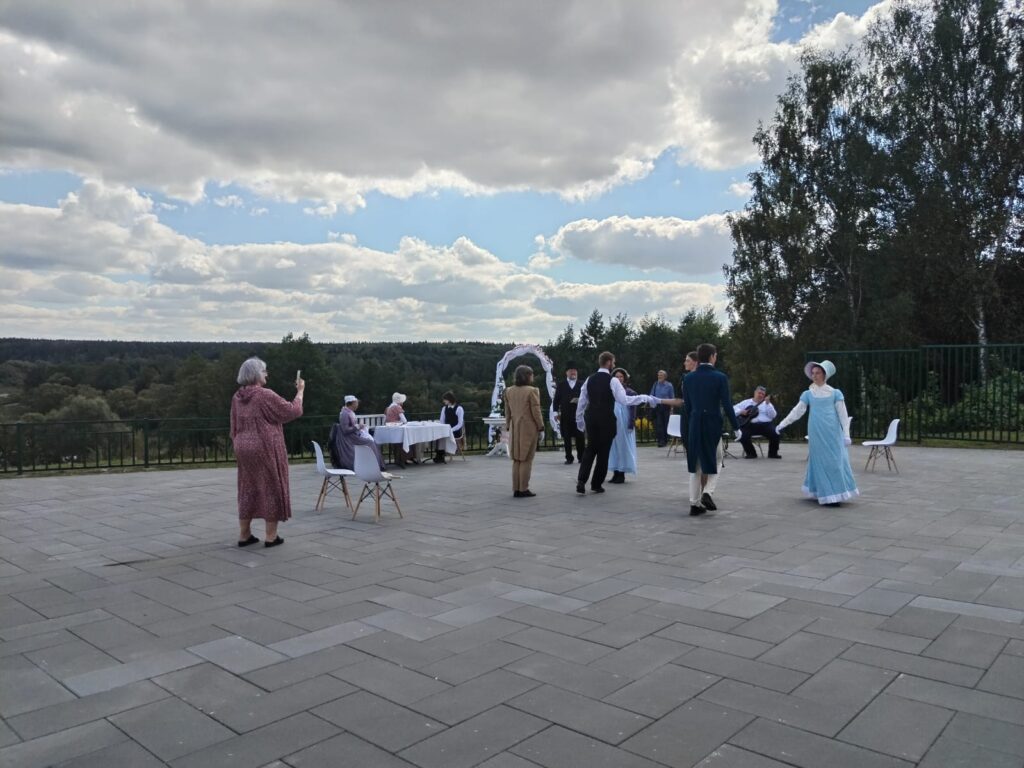 Возле главного дома Гончаровых состоялось торжественное открытие праздника для жителей и гостей нашего поселка и возложение цветов у памятнику Натальи Николаевны и Александра Сергеевича. Праздник продолжался у дома Щепочкина и в Пушкинском парке. Сотрудники конного двора усадьбы Гончаровых подготовил представление с лошадьми.