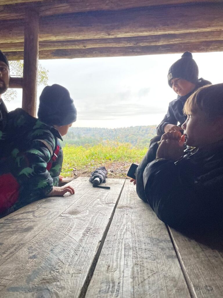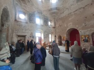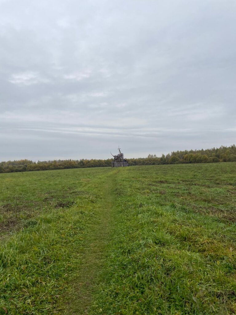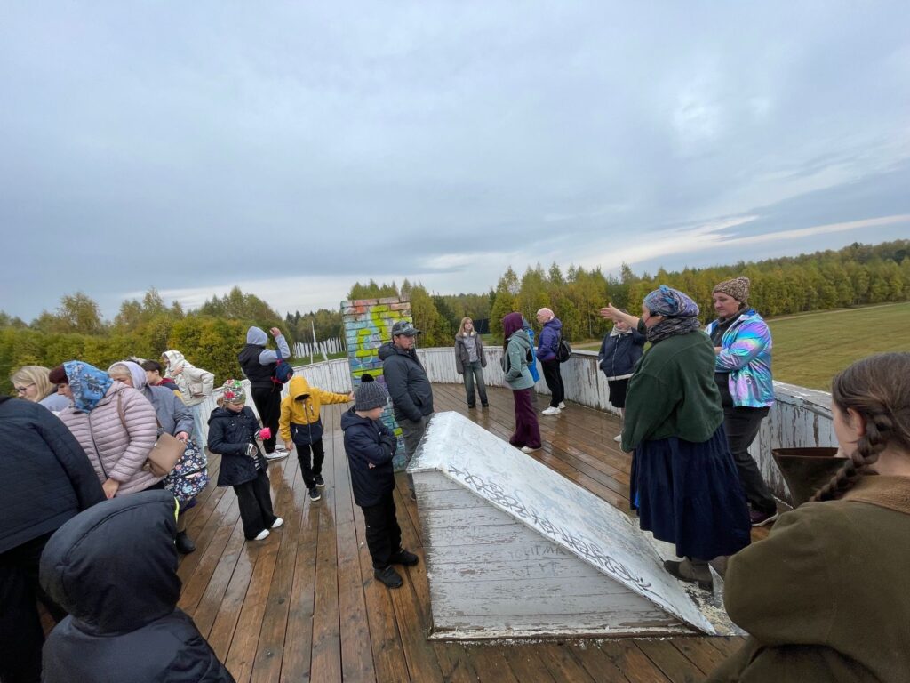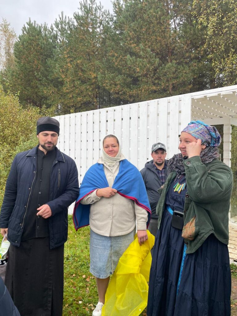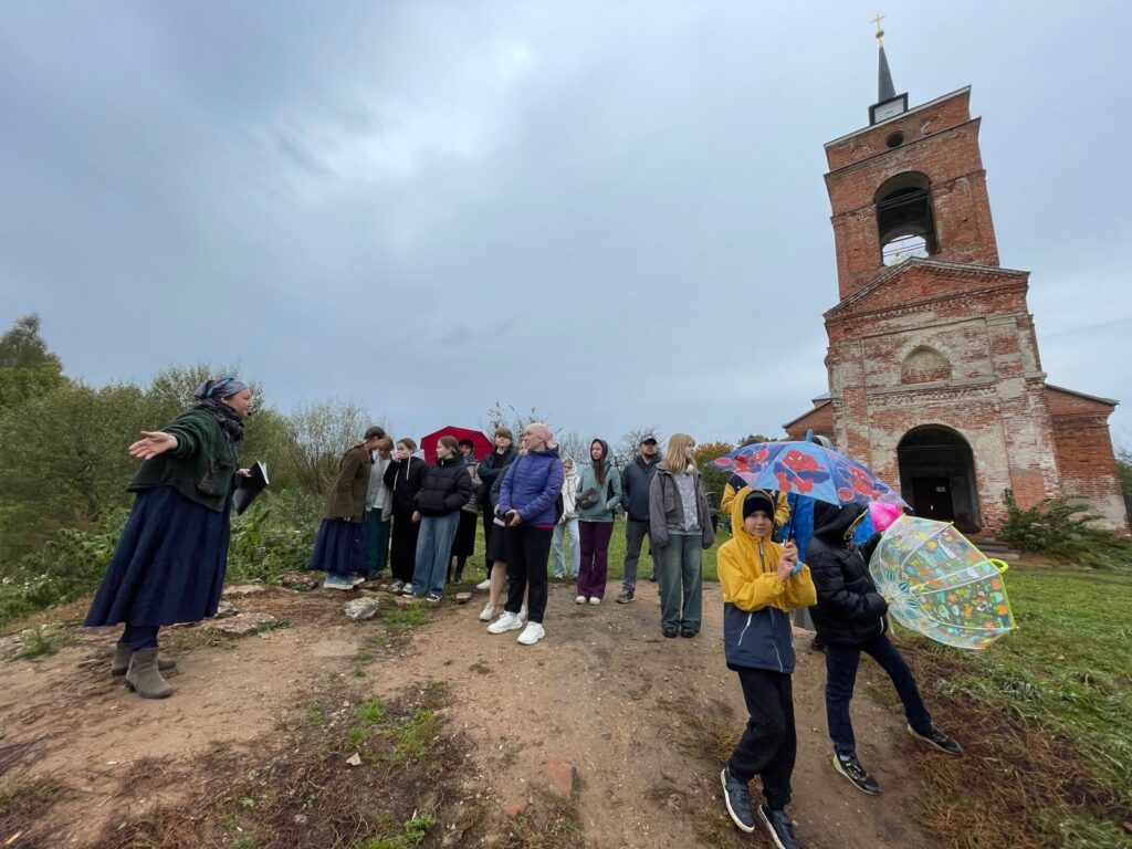 Наше путешествие началось с восстанавливающегося храма в честь Святой Живоначальной Троицы. По благословению настоятеля прихода протоиерея Вячеслава Сабурова, в храме был совершен молебен Святой Троице и свт. Николаю Чудотворцу. Погода нас встретила дождливым настроением, но сразу после молебна дождик прекратился, и мы смогли посетить арт-парк «Никола-Ленивец». По храму и арт-объектам парка провела очень увлекательную экскурсию сотрудник парка и директор Звизжевской библиотеки Кремень-Косякова Юлия. Экскурсовод рассказала об истории храма, этапах его восстановления, завершенных на данный момент. Образовании арт-парка, его художниках, поведала историю зарождения идей, вдохновении и воплощения арт-объектов.