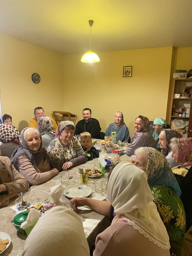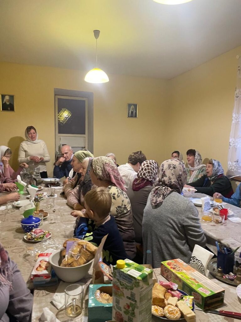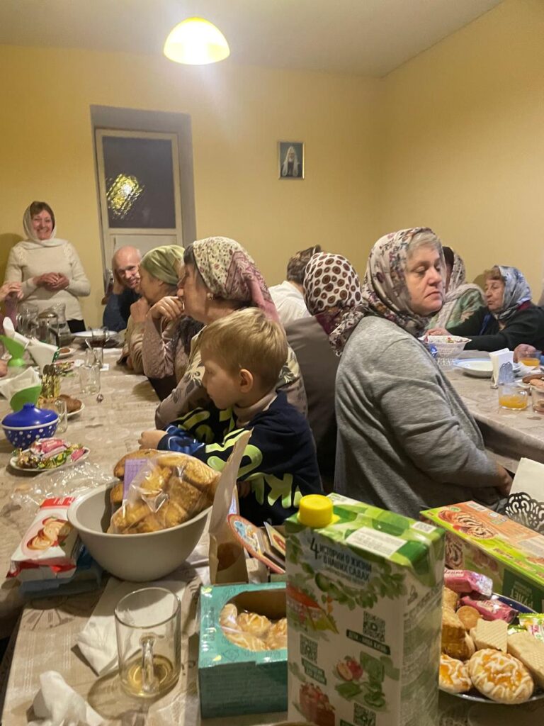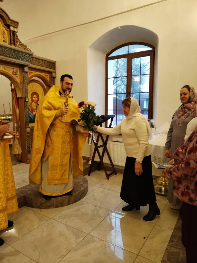 Для нашего храма и всех прихожан это особенный день. 24 ноября считается днем рождения храма Преображения Господня в усадьбе Гончаровых, храму исполнилось 6 лет со дня освящения, после его воссоздания. Так совпало, что в этот день также и день рождения настоятеля храма иерея Ярослава. Поэтому служба традиционно закончилась общей фотографией и затем все переместились в трапезную на чаепитие, чтобы отпраздновать. Батюшка получил много добрых и тёплых поздравлений. Отец Ярослав поблагодарил всех за проявленное внимание.