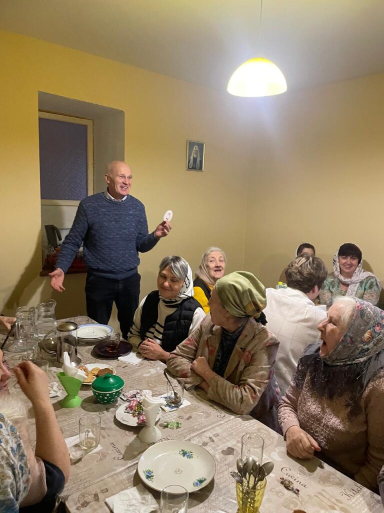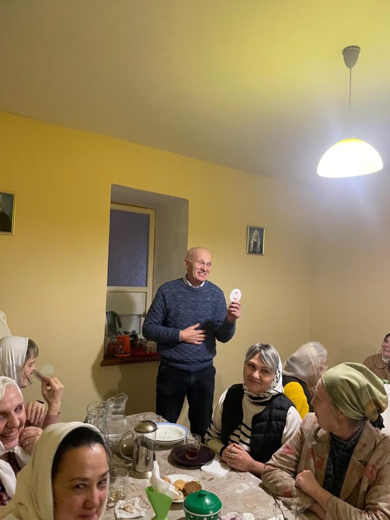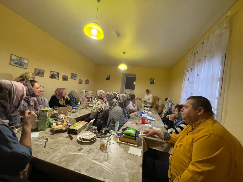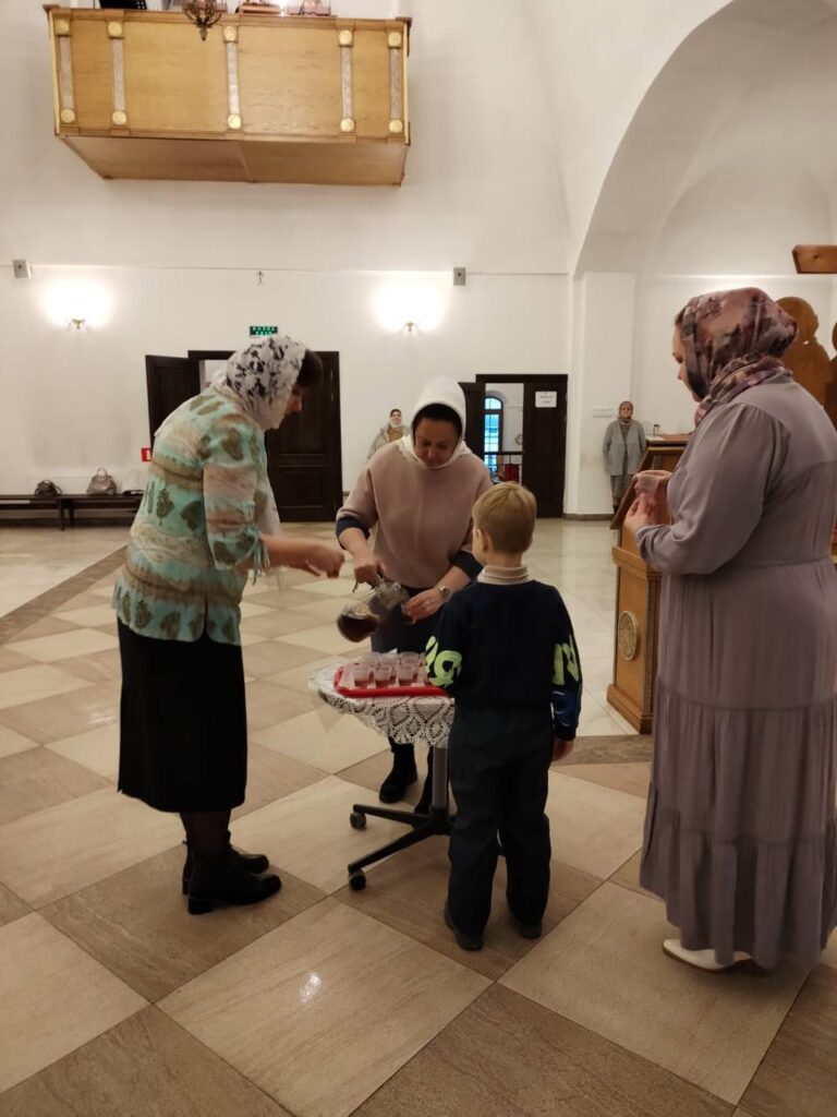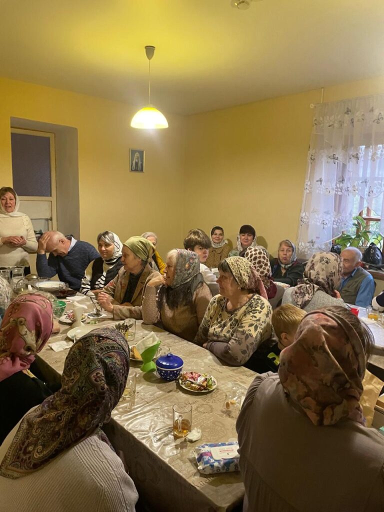 Для нашего храма и всех прихожан это особенный день. 24 ноября считается днем рождения храма Преображения Господня в усадьбе Гончаровых, храму исполнилось 6 лет со дня освящения, после его воссоздания. Так совпало, что в этот день также и день рождения настоятеля храма иерея Ярослава. Поэтому служба традиционно закончилась общей фотографией и затем все переместились в трапезную на чаепитие, чтобы отпраздновать. Батюшка получил много добрых и тёплых поздравлений. Отец Ярослав поблагодарил всех за проявленное внимание.