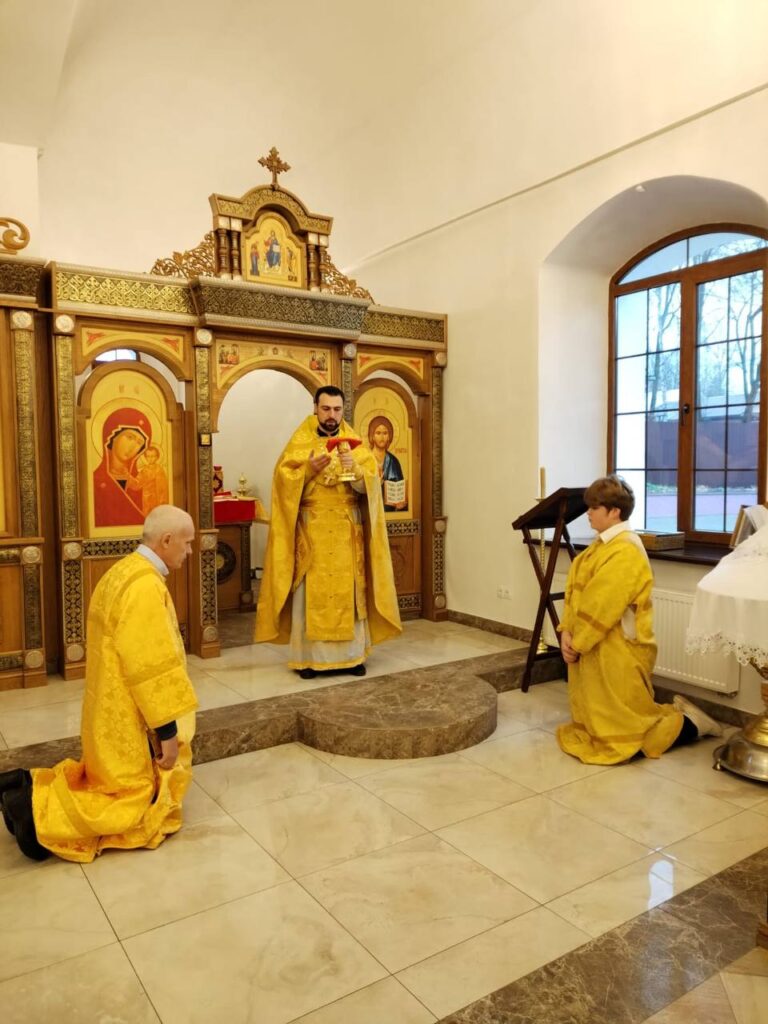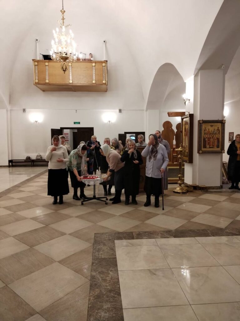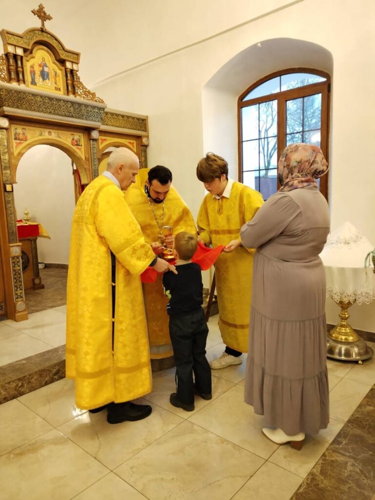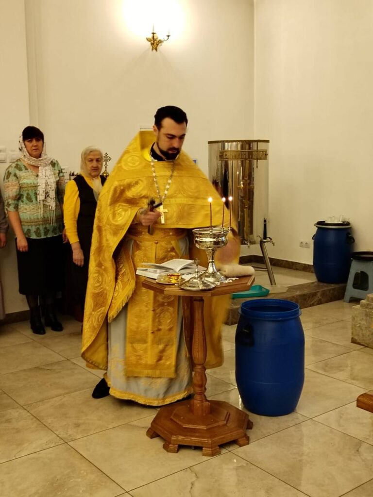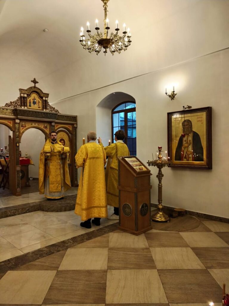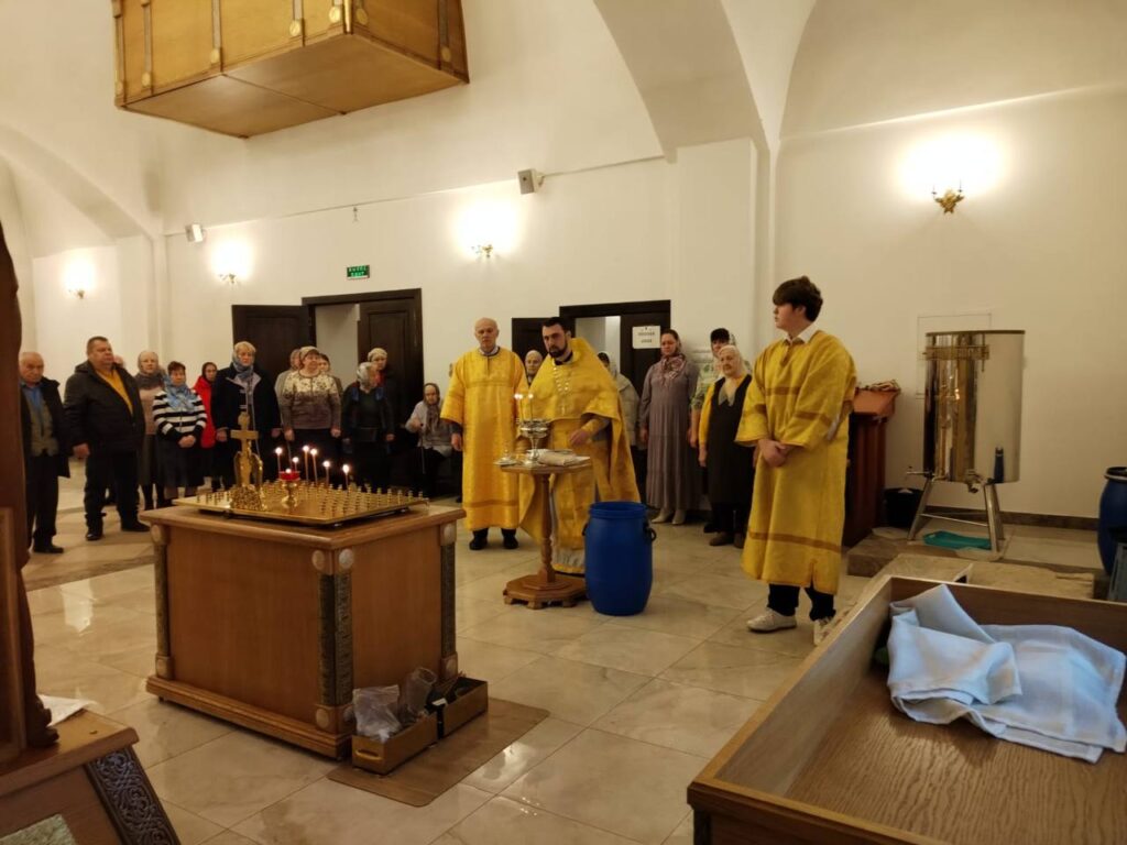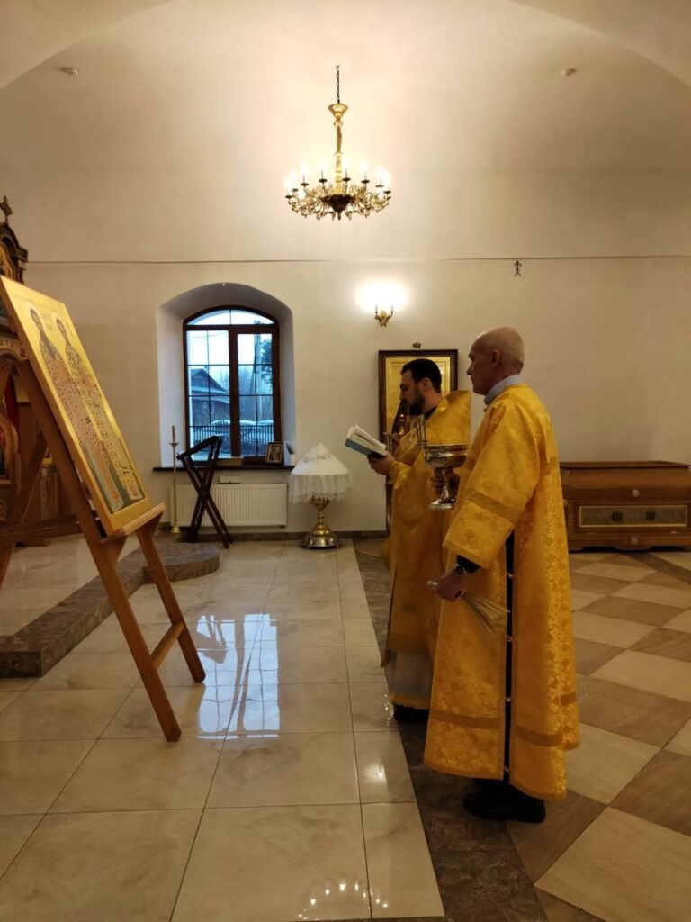 26 ноября 2025 — день памяти святителя Иоанна Златоустого, архиепископа Константинопольского. Для нашего храма — это престольный праздник. Малый придел освящён в честь Иоанна Златоустого. Поэтому само богослужение проходило в этом приделе. Придел был малый, но сама служба была очень насыщенной. После Божественной литургии отец Ярослав совершил чин освящения воды и освятил новую икону нашего храма с изображением двух святителей Иоанна Златоустого и Василия Великого для иконостаса этого придела. На проповеди батюшка поздравил всех присутствующих с праздником и выразил большую благодарность всем, кто оказал посильную помощь в написании иконы.