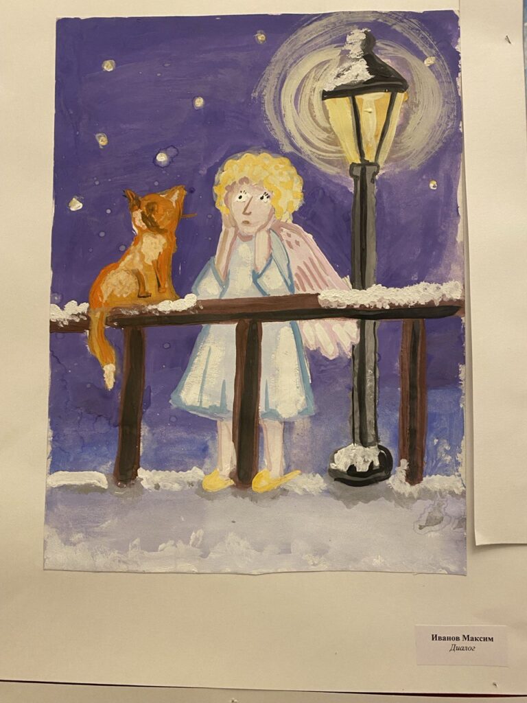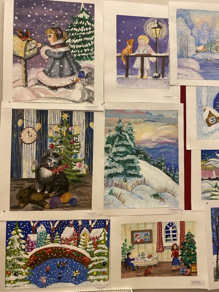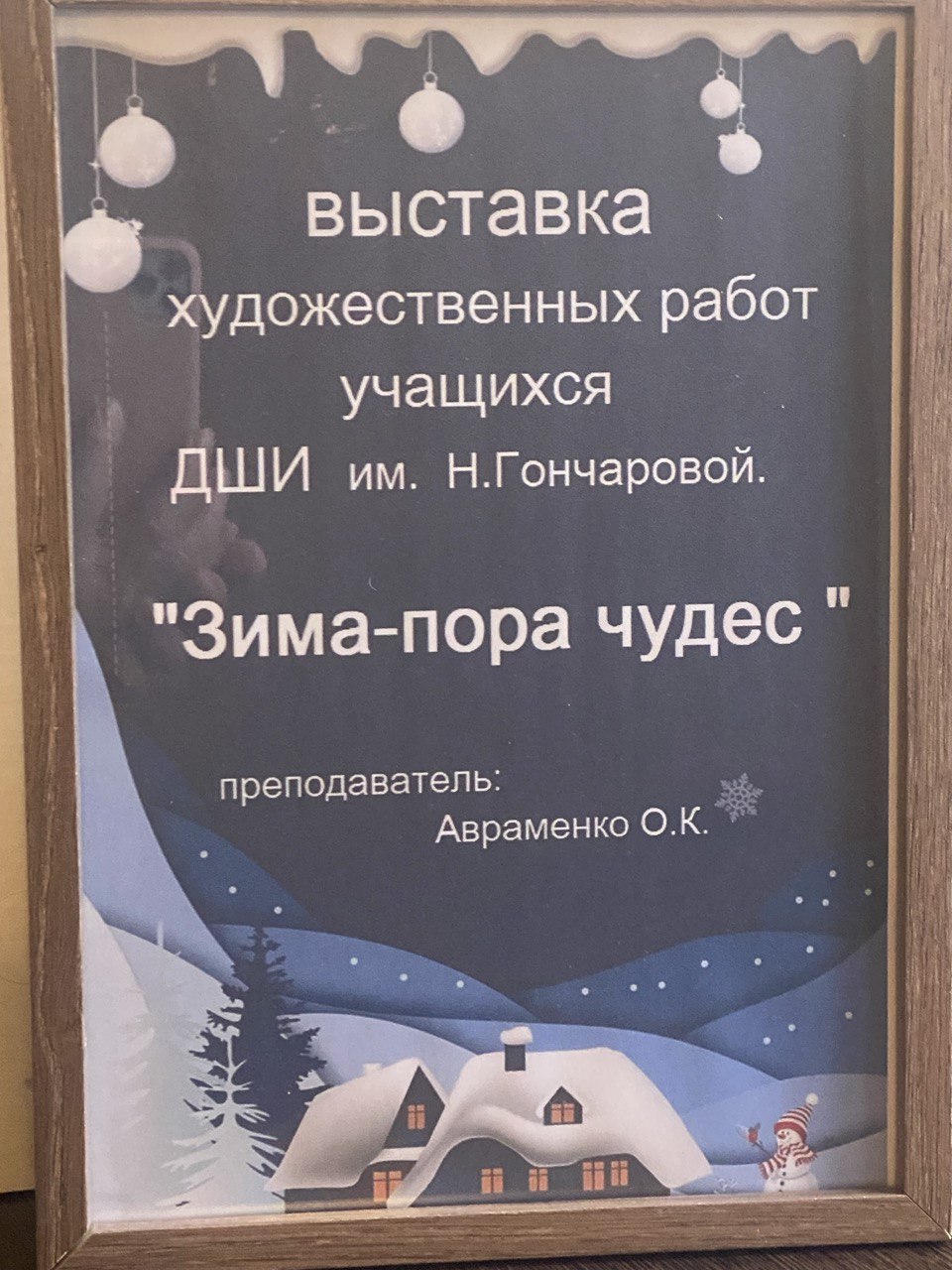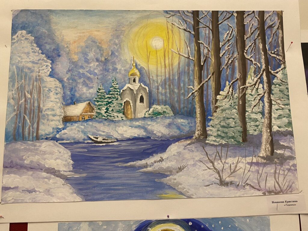 На прошедшей неделе в нашем храме Преображения Господня в усадьбе Гончарова открылась выставка художественных работ учащихся ДШИ им. Н.Гончаровой «Зима-пора чудес», преподаватель Авраменко О.К. Это всегда интересное и полезное мероприятие, когда дети занимаются творчеством, они тем самым создают праздник, как для себя, так и для взрослых.Зима — замечательное время года! Люди ласково называют зиму за ее красоту «Зимушка—Зима». Каждый год она приходит к нам в гости и рисует свои картины. В этом году зима не спешит вступать в свои права… И все же картины у нее особенные, написанные холодом, снегом, льдом. У каждого ребенка свой сюжет, неповторимый, но зима на рисунках каждого из них потрясающая, снежная, яркая и такая любимая. Богатство красок, разнообразных задумок. Каждая работа с изображением зимних прелестей, хороша по-своему и обладает особой притягательной магией: хочется бесконечно рассматривать и восхищаться. Рассматривая художественные работы, будто совершаешь прогулку по зимнему лесу, ощущаешь свежесть зимнего воздуха…, наряжаешь елочку или гладишь любимого питомца… В свои работы дети вдохнули жизнь в, казалось бы, привычное и обыденное — семья, дом, друзья, любимые животные, природа.