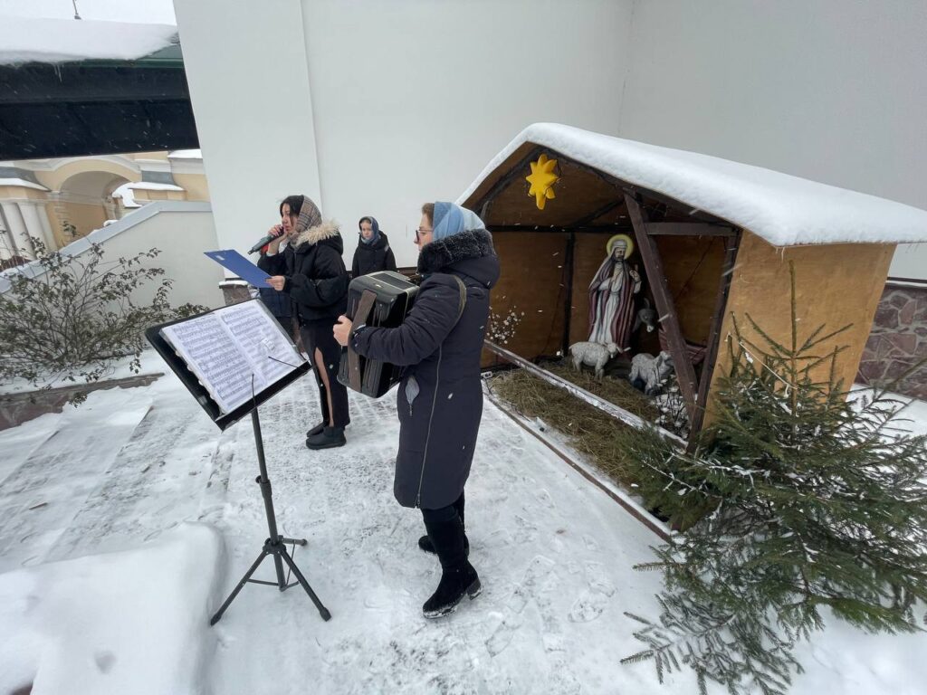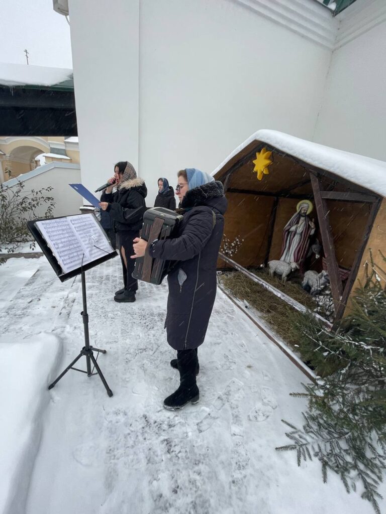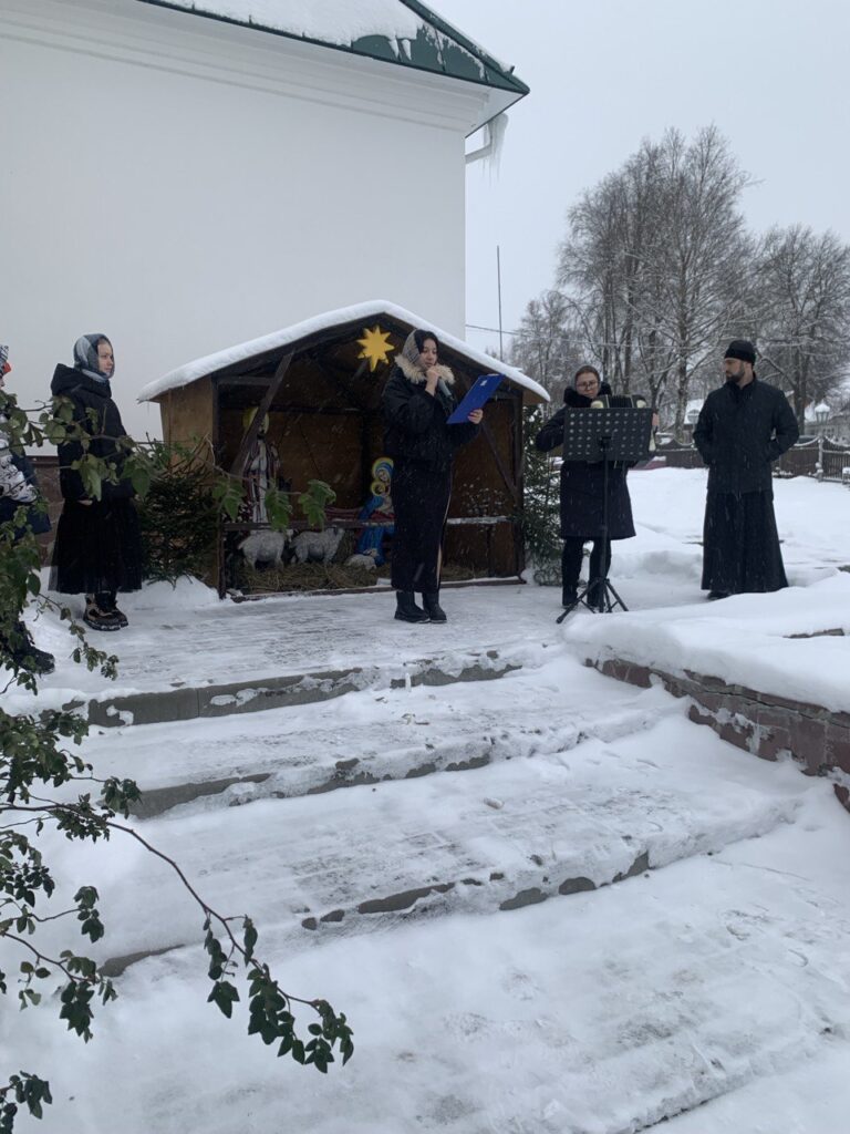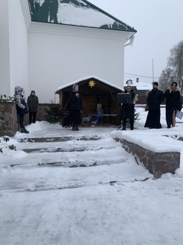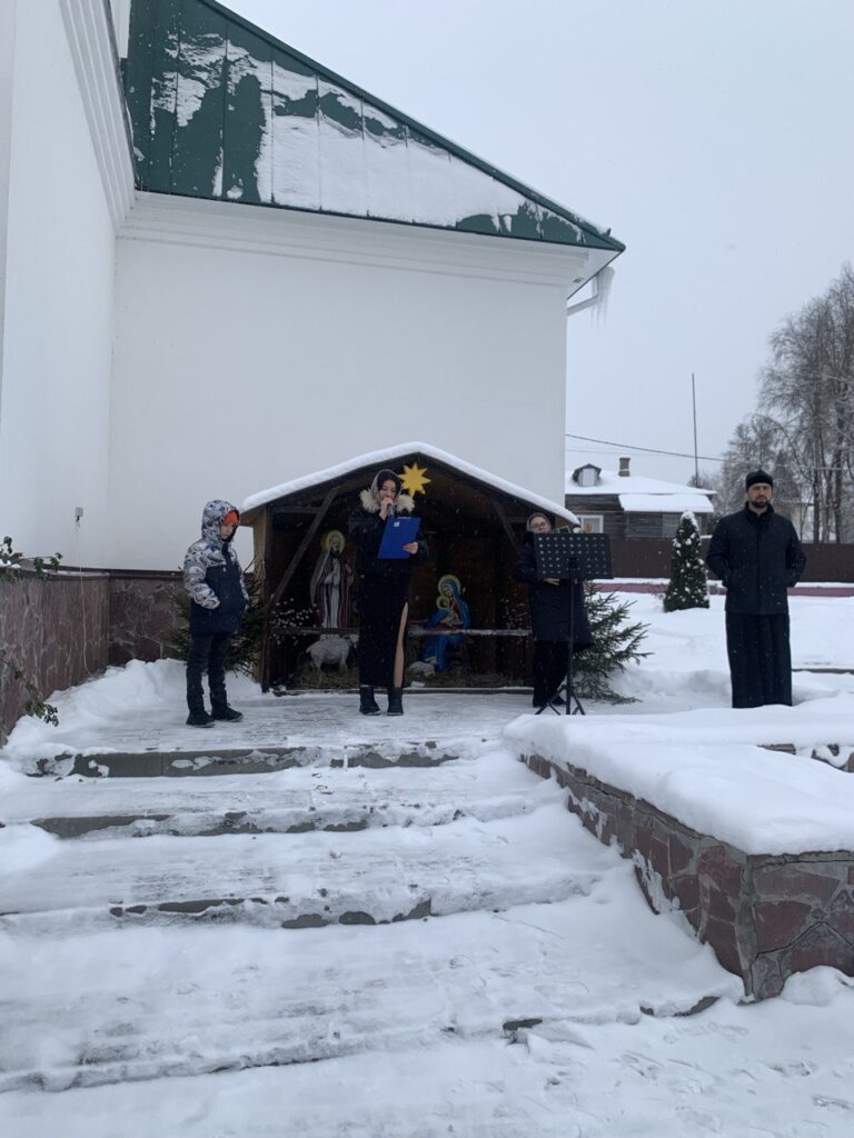 Существует прекрасная старинная традиция под Рождество устанавливать в храмах вертеп и украшать храм елочками. Вертеп с фигурами внутри- это символ Вифлиемской пещеры, где родился Иисус. На территории нашего храма уже установили Рождественский вертеп и потихоньку храм украшают елочками. После богослужения провели торжественное открытие вертепа. С вступительным словом отец Ярослав обратился ко всем присутствующим. Не смотря на мороз, воспитанники воскресной школы также провели маленький концерт со стихами и песнями, а помогала им преподаватель ДШИ им. Н.Гончаровой Литвиненко Светлана Владимировна.