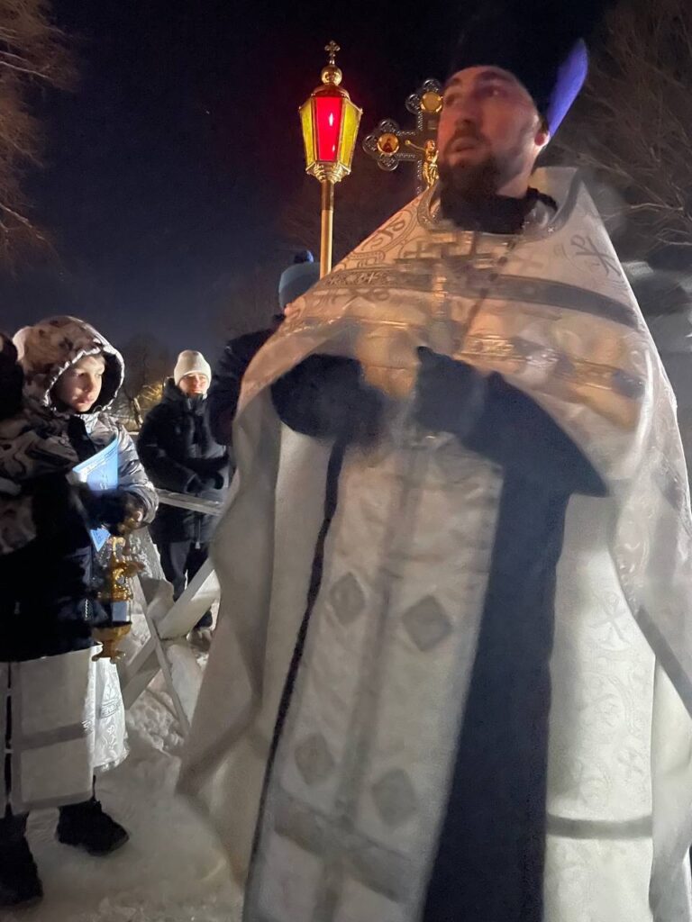 У иордани настоятель храма отец Ярослав совершил чин освящения воды, после чего щедро окропил верующих святой водой. Люди радуются, праздник наступил!