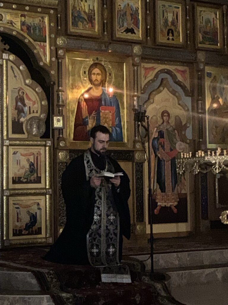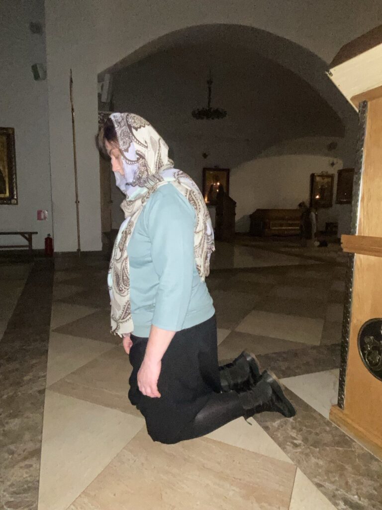 После 6-й песни наступает особенный момент богослужения — пение кондака «Душе моя восстани, что спиши». В этот момент батюшка Ярослав и все прихожане в храме встают на колени. Это песнопение — напоминание, что душе пора восстать от греховного сна и позаботиться о том, чтобы достойно предстать на суд Божий, и попросить Господа о милости.