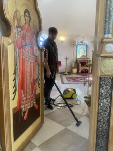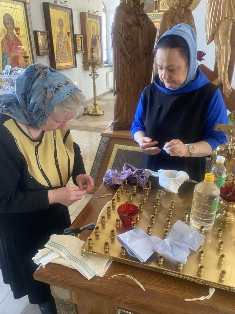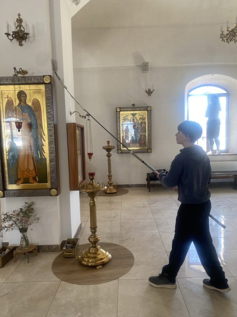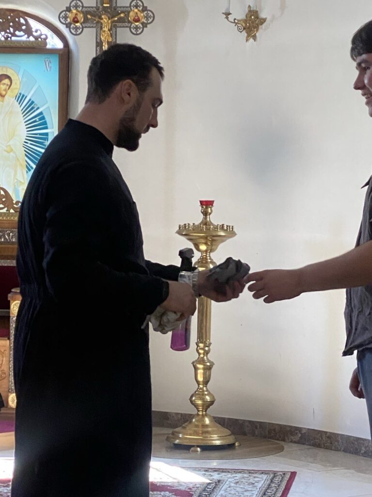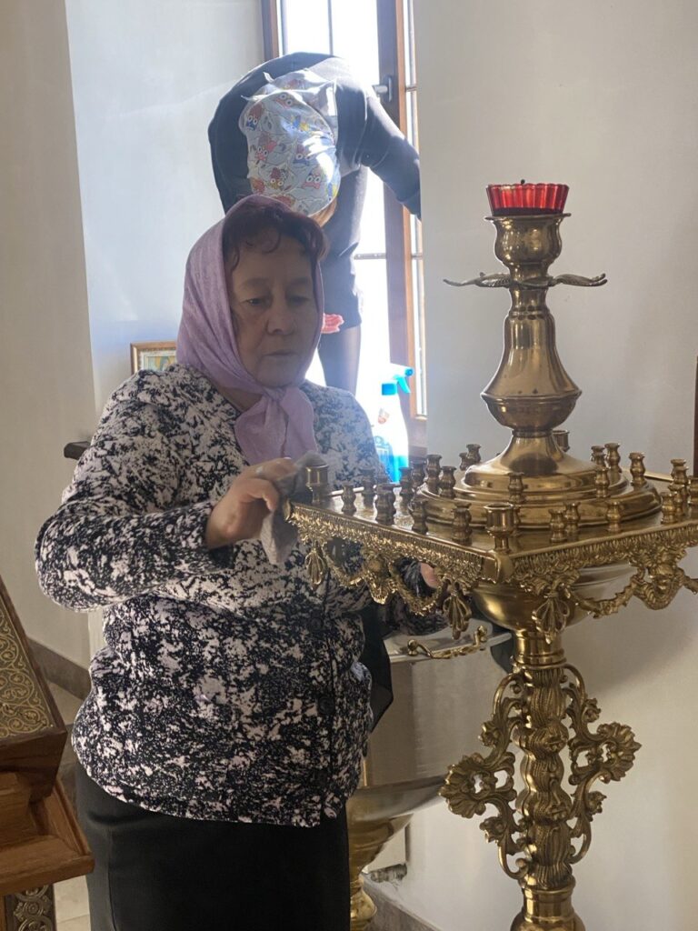 Потрудиться из любви к Богу остались люди разных возрастов. Прихожане дружно взялись за дело: вымыли подсвечники и лампадки, протерли иконы, очистили стены и углы от пыли, тщательно вымыли окна и полы. Каждый трудился по любви к Богу и ради пользы собственной души. Искренне желаем, чтобы Господь вознаградил каждого за благоговейное отношение к Его святому храму, исполнил во благих желание каждого и помог всем на пути жизни!