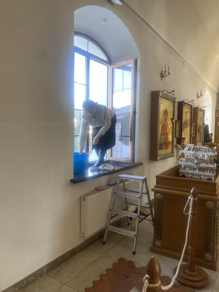 Храм посветлел, заблестел и готов к предстоящим праздникам. По словам святого Серафима Саровского: «Нет паче послушания, как послушание Церкви! И если токмо тряпочкою притереть пол в дому Господнем, превыше всякого другого дела поставится у Бога… И где же и возрадуемся духом, сердцем и всем помышлением нашим, как не в нем, где Сам Владыка Господь наш с нами всегда соприсутствует!»