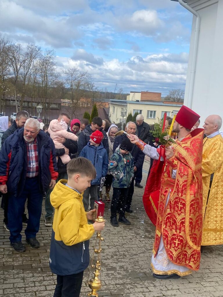 Сегодняшний день был наполнен радостью и жизнью. В храме прошла Божественная литургия, которую совершил батюшка Ярослав, посвященная апостолу Фоме, которая также известна как Антипасха. После службы был совершён крестный ход и водосвят, после которого каждый мог унести с собой частичку благодати домой.