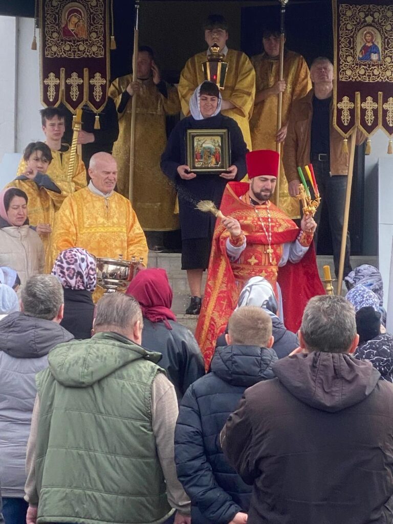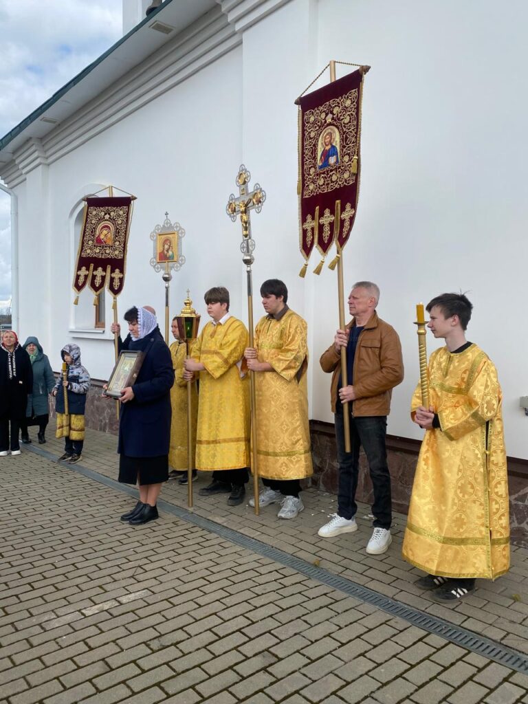 В этот день прихожане и особенно прихожанки ярко и радостно ощутили праздничное настроение на воскресном богослужении. Даже погода не смогла испортить радостную атмосферу. Не смотря на дождик и холодный ветер, после Божественной литургии, прихожане прошли крестным ходом вокруг храма.