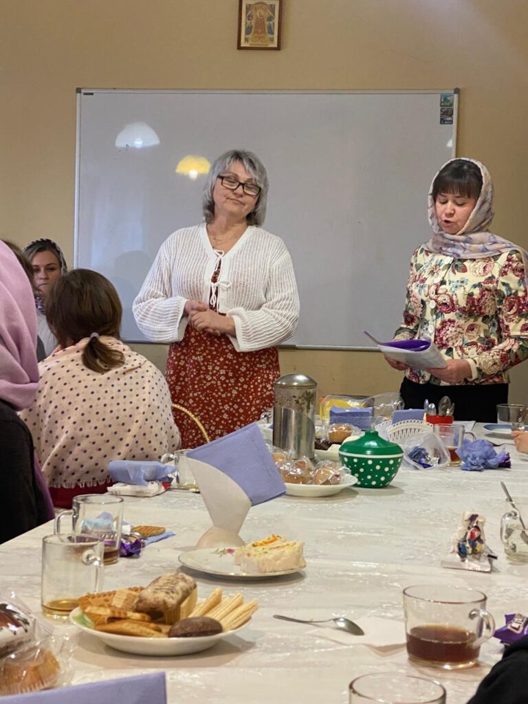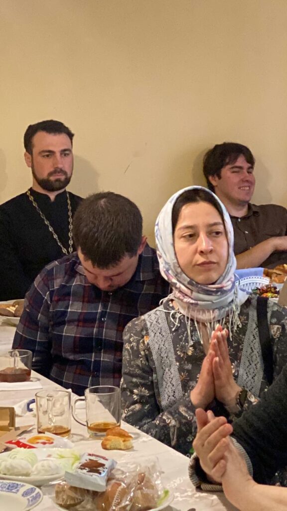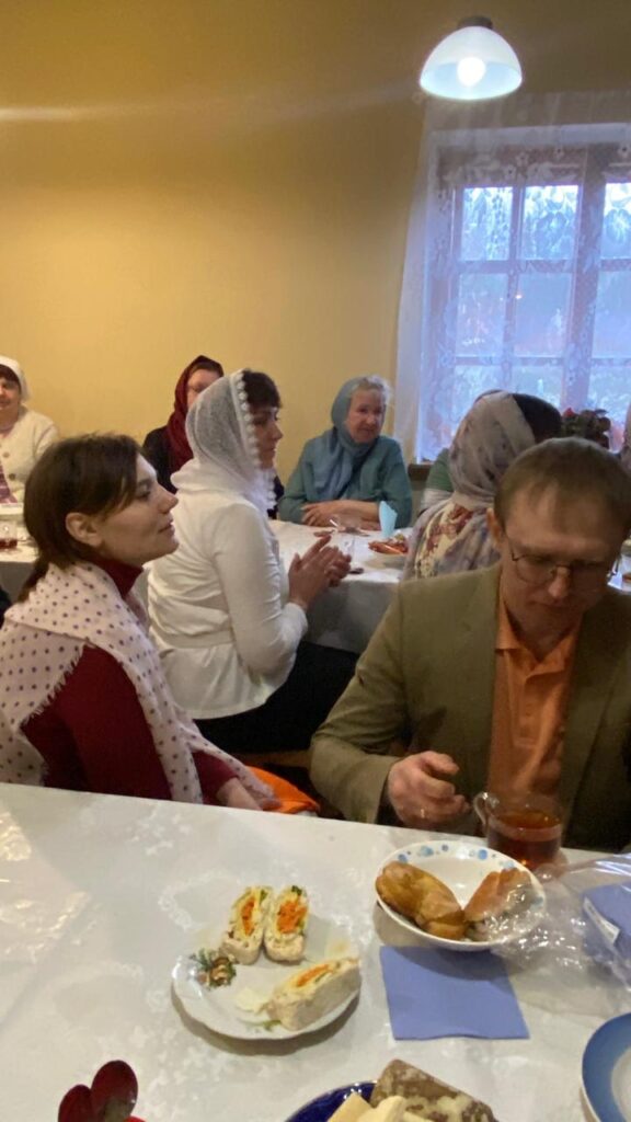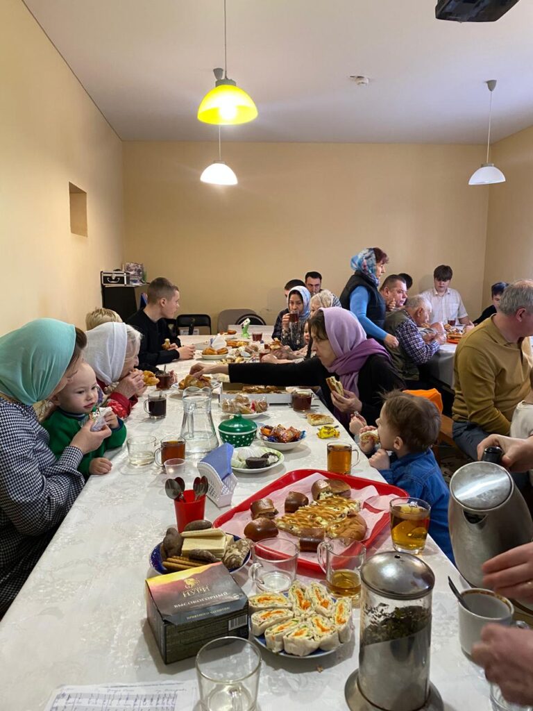 После Божественной литургии всех прихожан ждала тёплая и душевная праздничная трапеза и концерт, который подготовили дети и прихожане нашего храма под чутким руководством певчей нашего клироса Никишиной Татьяны. За общим столом мы продолжили праздновать, общались, делились духовными размышлениями и просто радовались интересному и красивому выступлению наших прихожан-артистов и возможности побыть вместе — как одна большая христианская семья. Атмосфера единства и братской любви ещё раз напомнила нам о том, как важно поддерживать друг друга на пути веры.